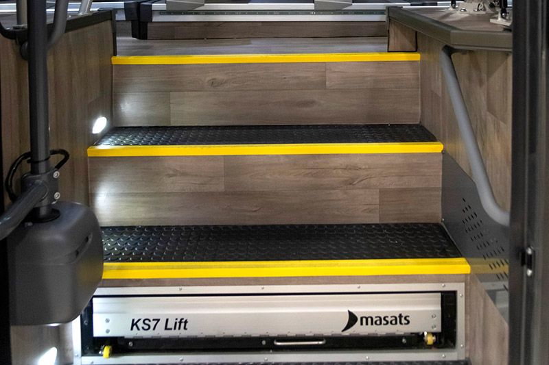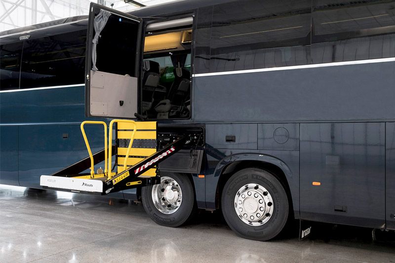 It is a latest generation PRM lift over the second or third axle and it has an upper door exclusively for use by people with reduced mobility.