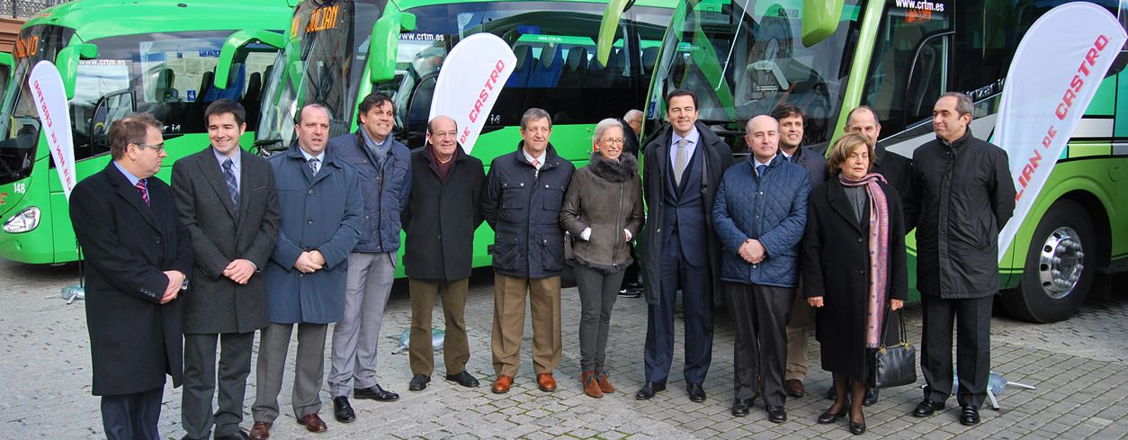 El pasado 29 de Enero, en un acto celebrado en Colmenarejo, se presentaron los cinco nuevos autocares interurbanos adquiridos por el cliente Julián de Castro. Se trata de los modelos de autocar Irizar i4 e Irizar i6, ambos de 13 metros de longitud sobre chasis Volvo E6 y equipados con 55 plazas y 59 plazas, 3 letreros de destino, instalación SAE y PMR con elevador automática Masats K7 y SAM 4000 respectivamente.