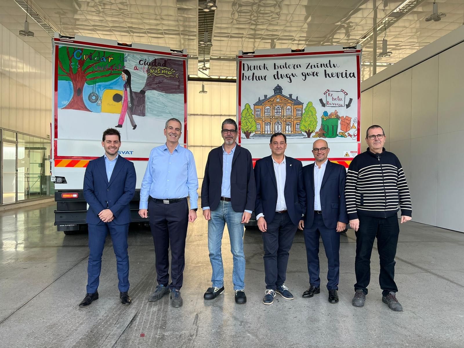 The vehicles were presented today at the Irizar facilities in Ormaiztegi, with the presence of the Mayor of San Sebastián Eneko Goia and the Councilperson for Maintenance and Urban Services Carlos García, as well as Imanol Riego, CEO of the Irizar Group, the Director of the Irizar ie truck vehicle Josu Letona and the Irizar ie truck sales manager, Miquel Gutierrez.